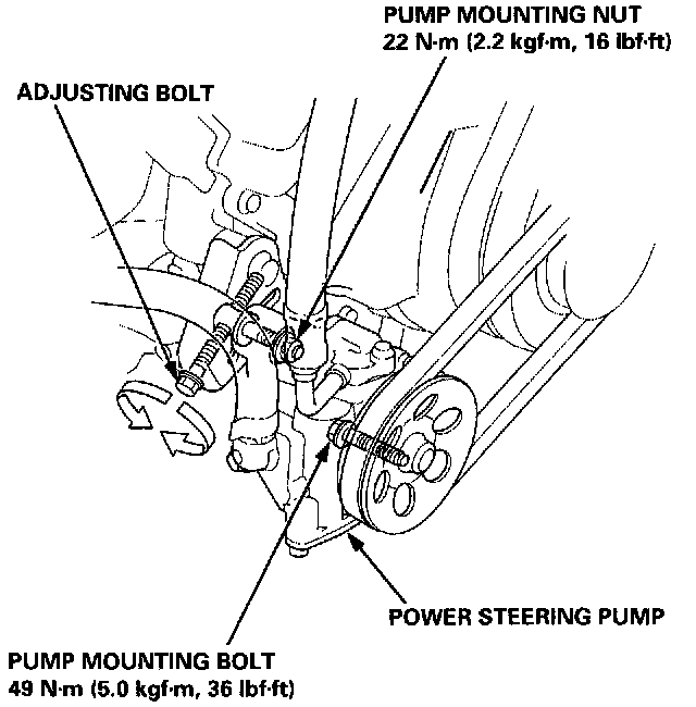3. Start the engine and turn the steering wheel from lock-to-lock several times, then stop the engine and recheck the deflection of the belt.
