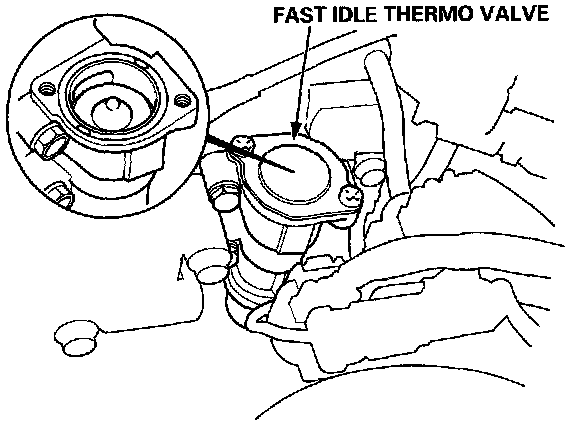 NOTE: The fast idle thermo valve is factory adjusted; it should not be disassembled.1. Remove the cover of the fast idle thermo valve.