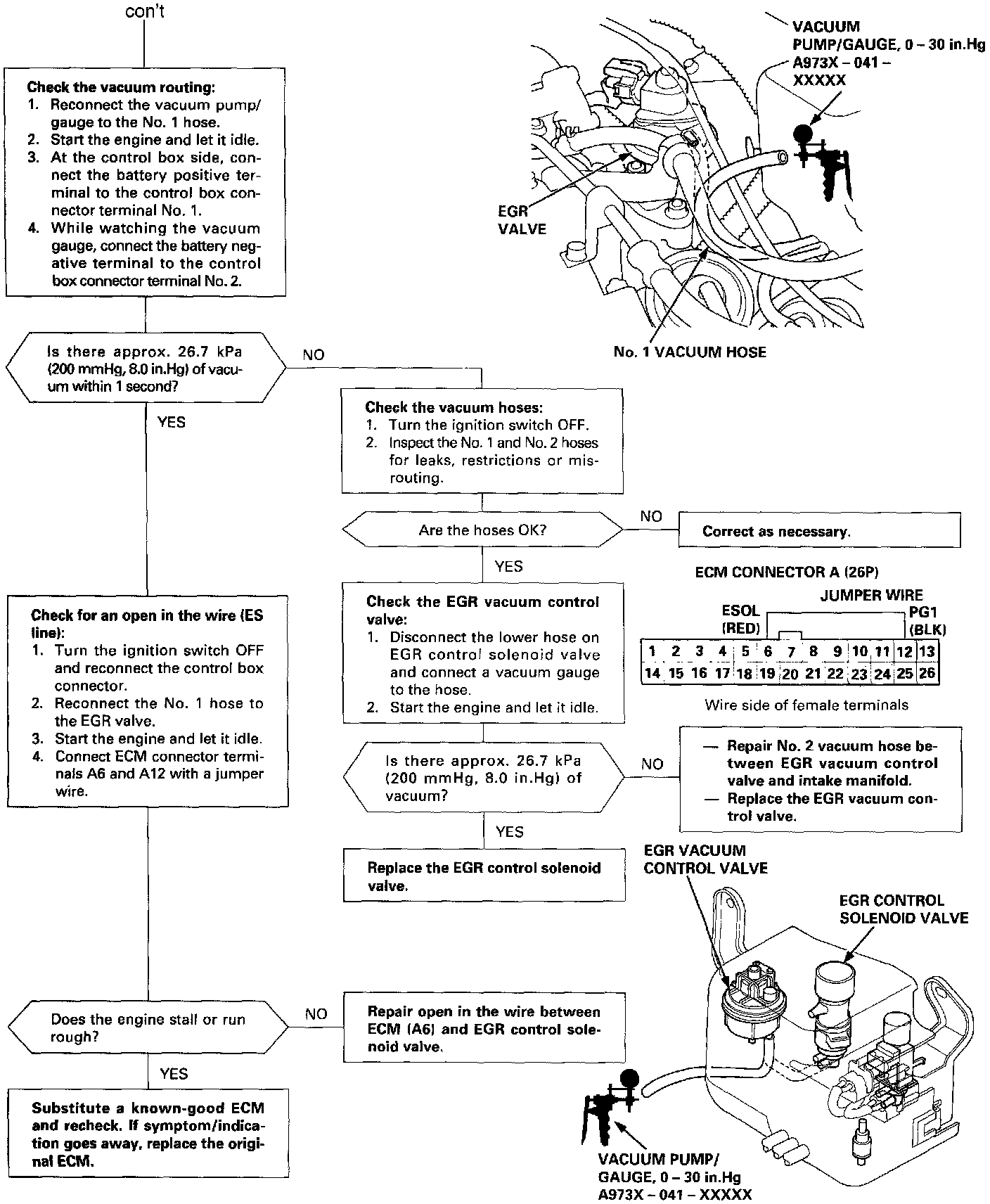If deterioration has been detected during two consecutive driving cycles, the MIL will come on and DTC PO4O1 will be stored.
