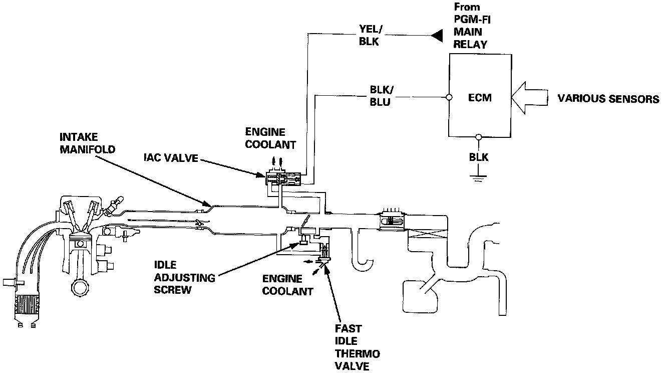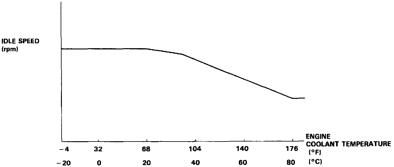 2. When the coolant temperature is low, the IAC valve is opened to obtain the proper fast idle speed. The amount of bypassed air is thus controlled in relation to the engine coolant temperature.