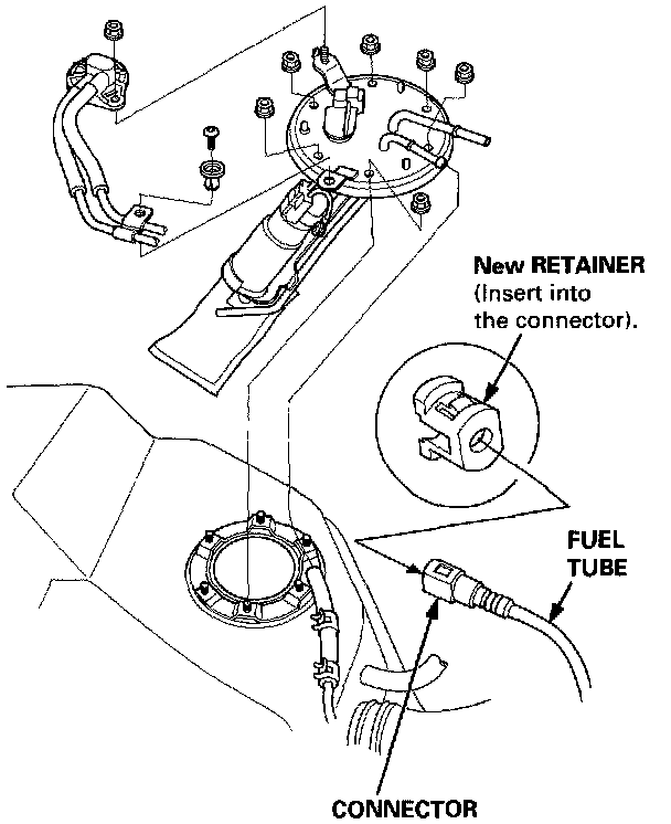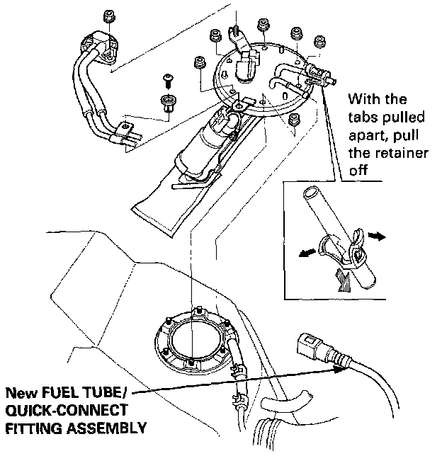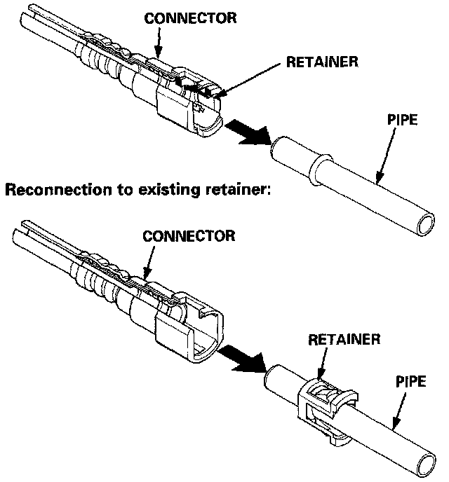Before connecting a new fuel tube/quick-connect fitting assembly, remove the old retainer from the mating pipe.