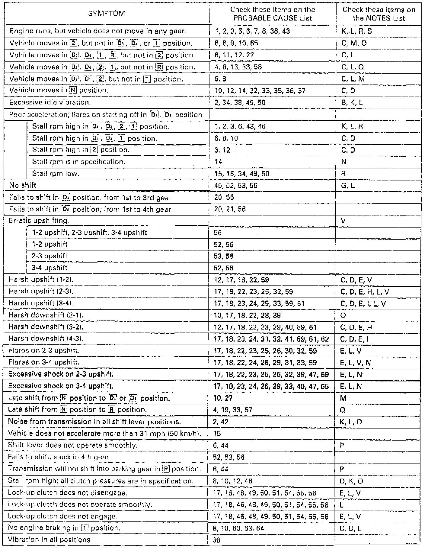 Symptom-To-Component Chart