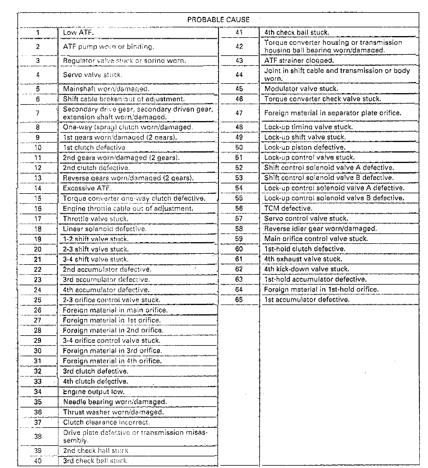 Probable Cause Due to Improper Repair List