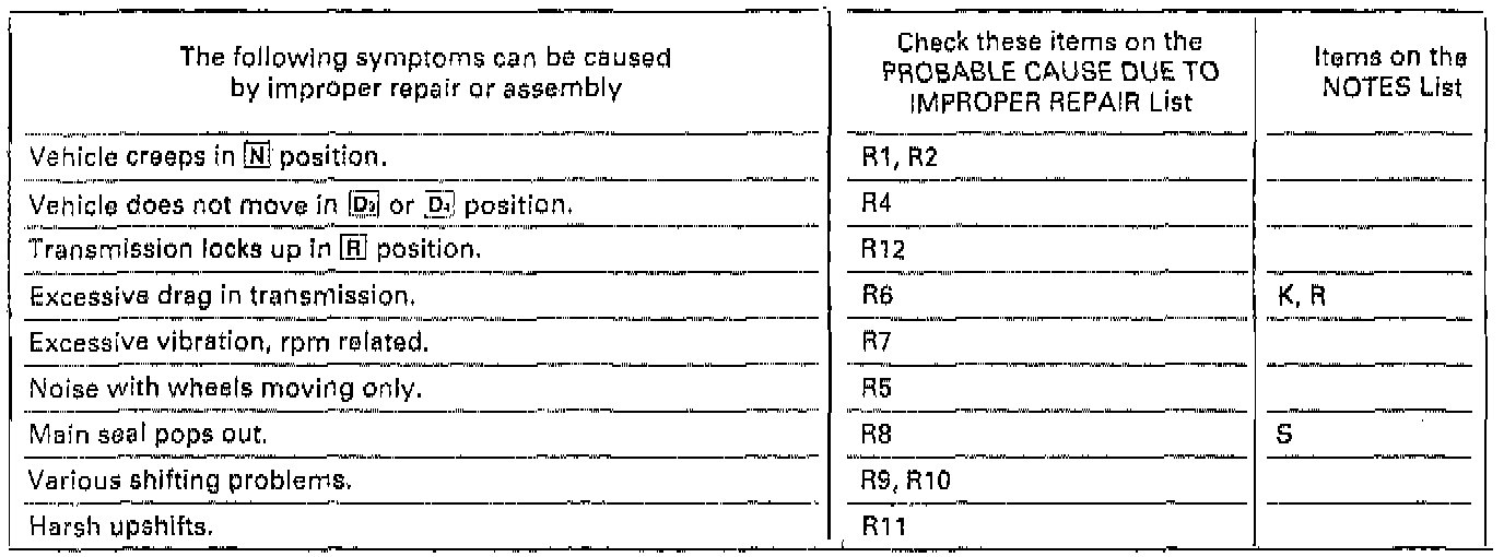 Symptoms Caused By Improper Repair or Assembly