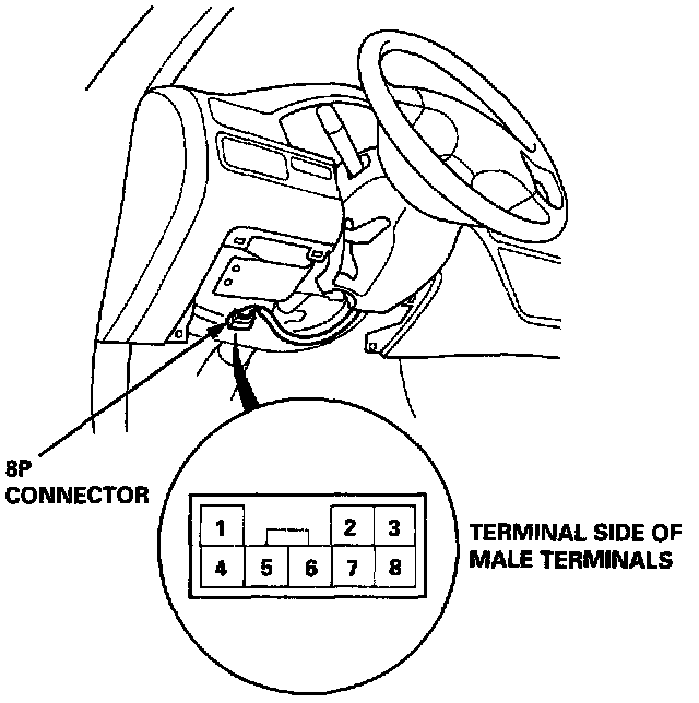 When the ignition key is not removed, the key-in beeper in the integrated control unit senses ground through the closed ignition key switch. When you open the driver's door, the beeper circuit senses ground through the closed door switch. With ground at the "BLU/WHT2,, and "A13" terminals, the beeper sounds.