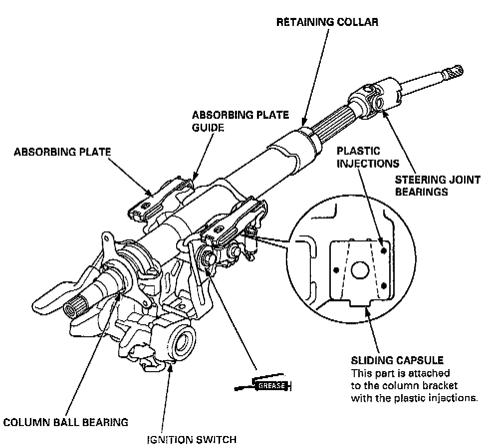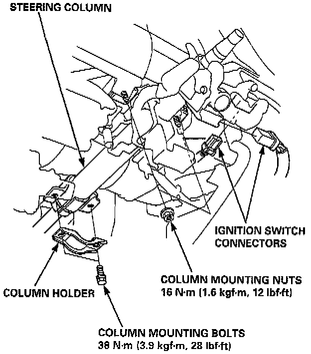 - Replace the steering column as an assembly if they are distorted or broken.