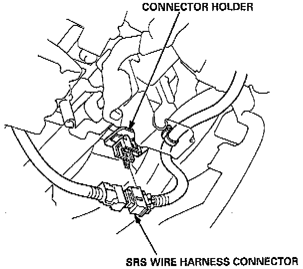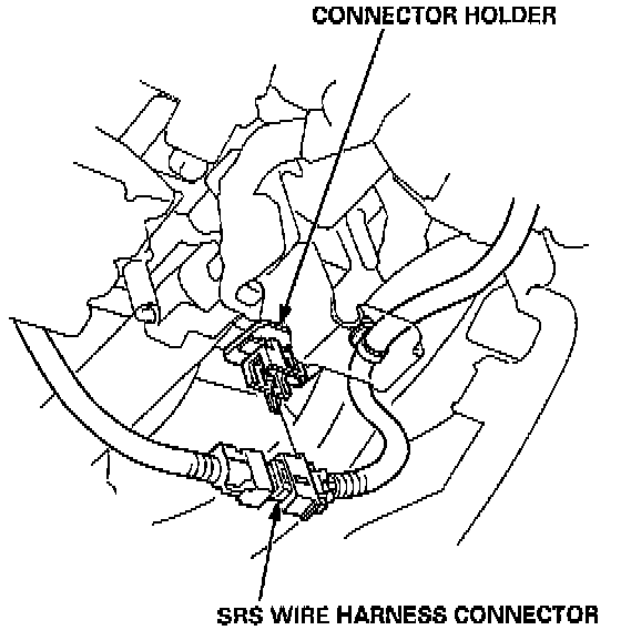4. Remove the SRS wire harness connector from the connector holder.