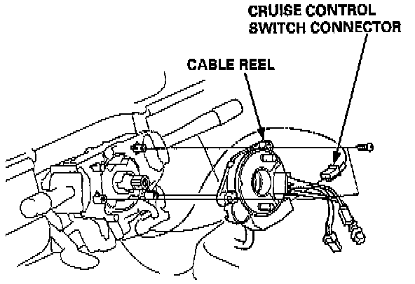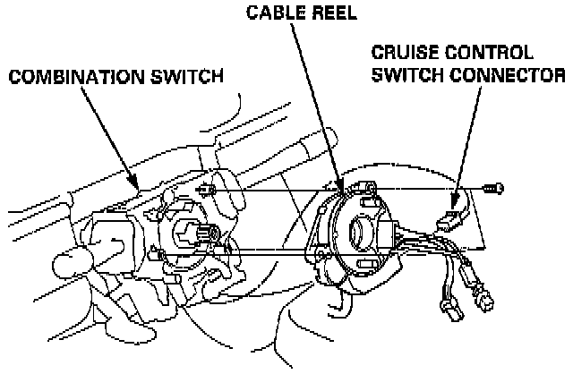 6. Disconnect the cruise control switch connector from the cable reel, and remove the cable reel from the combination switch.