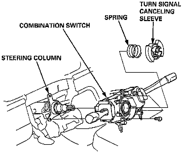 8. Install the spring and turn signal canceling sleeve onto the combination switch.