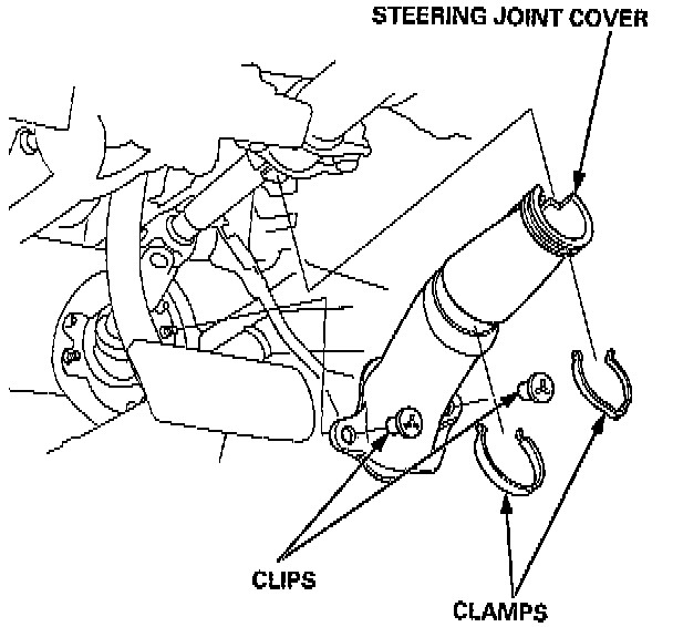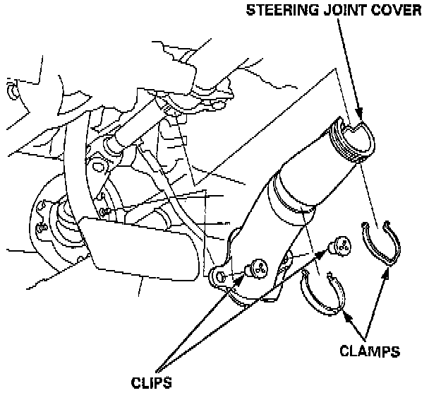 5. Install the steering joint cover with the clamps and clips.