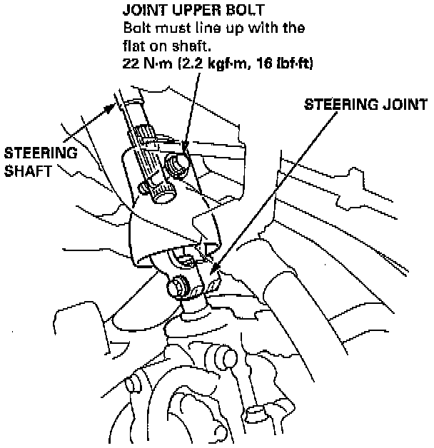NOTE: Before tightening the joint upper bolt, pull on the steering joint to make sure that the steering joint is fully seated.