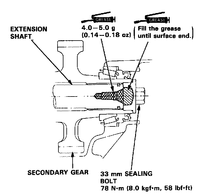 8. Fill the extension shaft and 33 mm sealing bolt with Super High Temp Urea Grease (P/N 08798-9002).