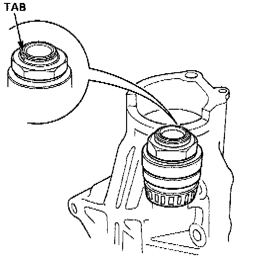 CAUTION: Make sure that the tab completely clears the groove to prevent damaging the drive pinion threads.