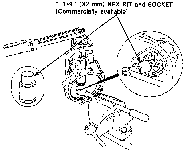 8. Hold the drive pinion using a 1 1/4" (32 mm) hex bit and socket as shown.