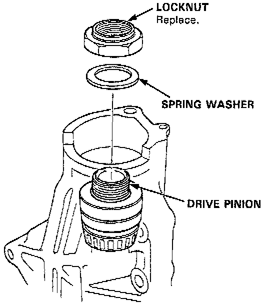 9. Remove the locknut and the spring washer from the drive pinion.