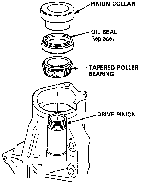 10. Remove the pinion collar and the oil seal, then tap the drive pinion through the tapered roller bearing.