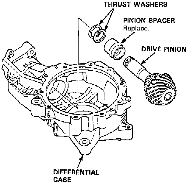 11. Remove the drive pinion, the pinion spacer, and the thrust washers.