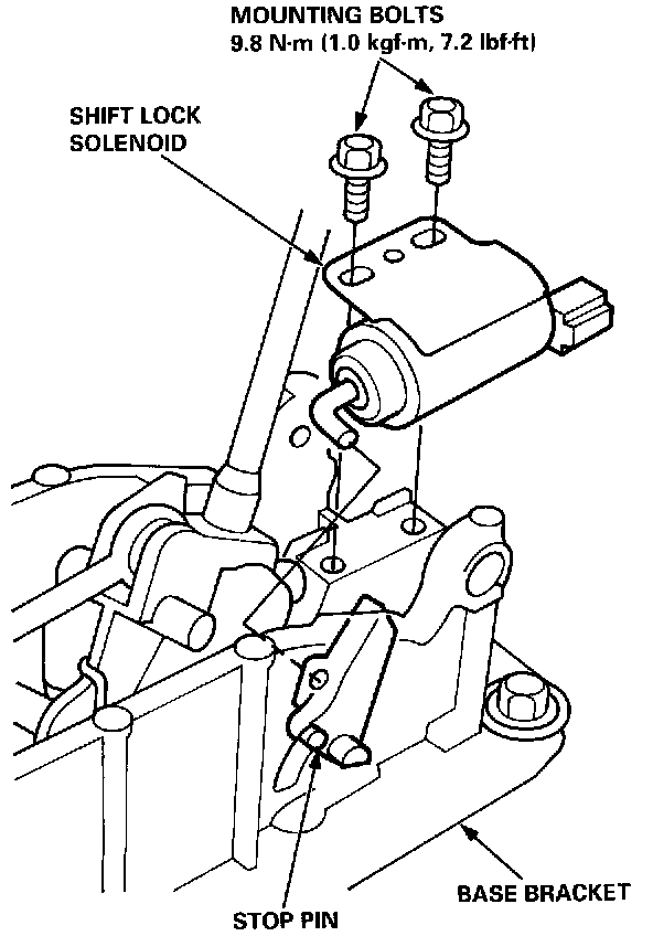 4. Remove the two mounting bolts, then remove the shift lock solenoid.