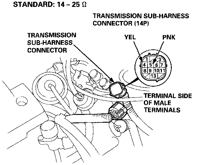 5. Replace the transmission sub-harness if the resistance is within specification.