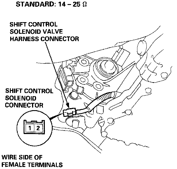6. Replace the shift control solenoid valve assembly if the resistance is out of specification.
