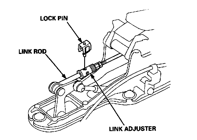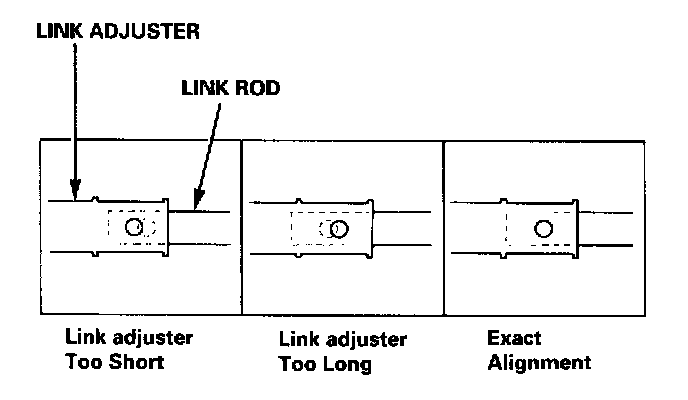 10. Install the lock pin on the adjuster, If you feel the lock pin binding as you reinstall it, the link rod is still out of adjustment and must be readjusted.