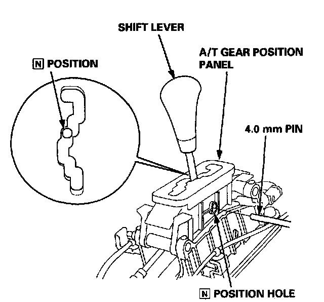 4. Insert a 4.0 mm (0.16 inch) pin into the shift lever bracket through the [N] position cutout of the shift lever.