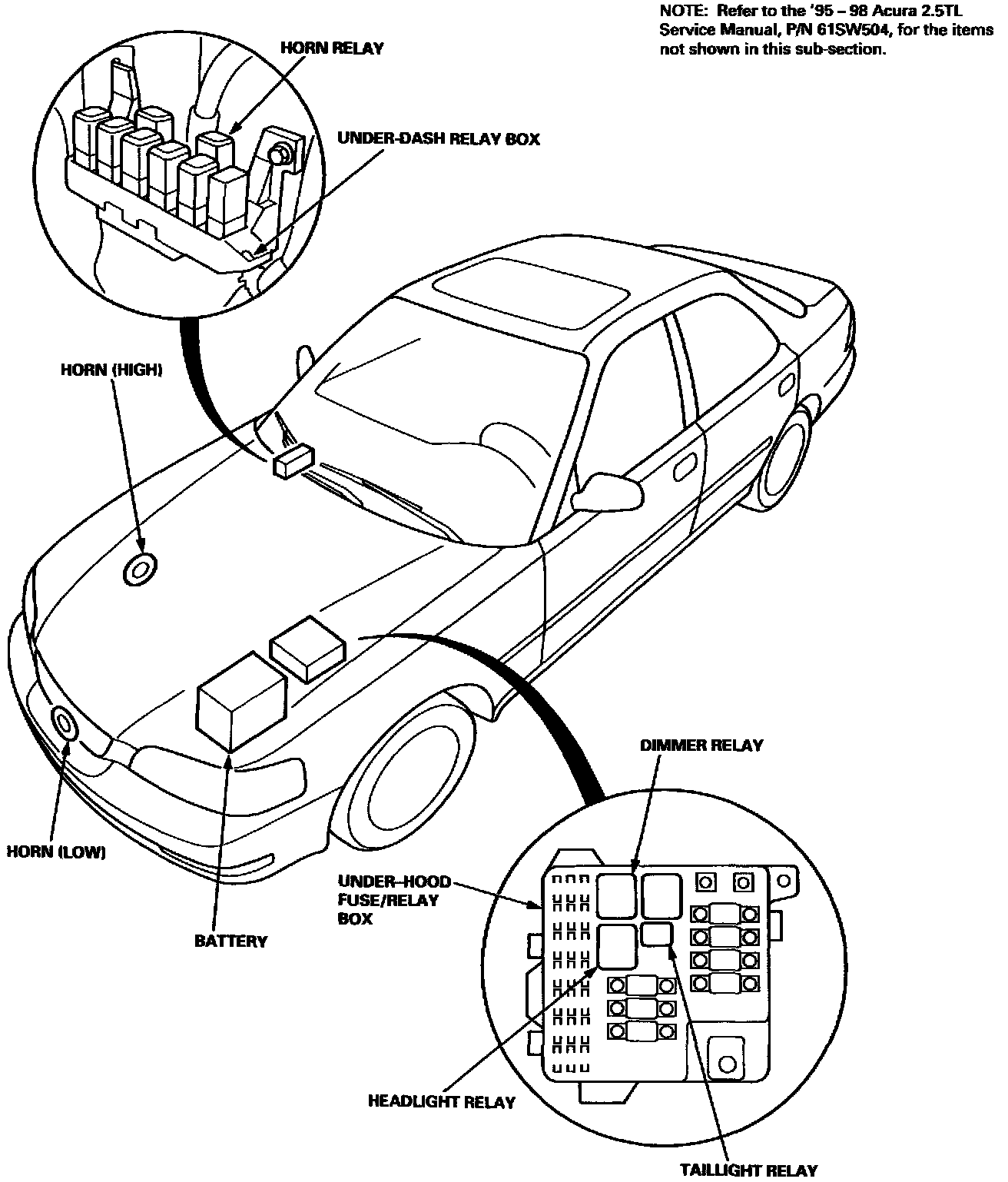 Refer to the '95-98 Acura 2.5 TL Service manual, P/N 61SW504, for the items not shown in this sub-section.