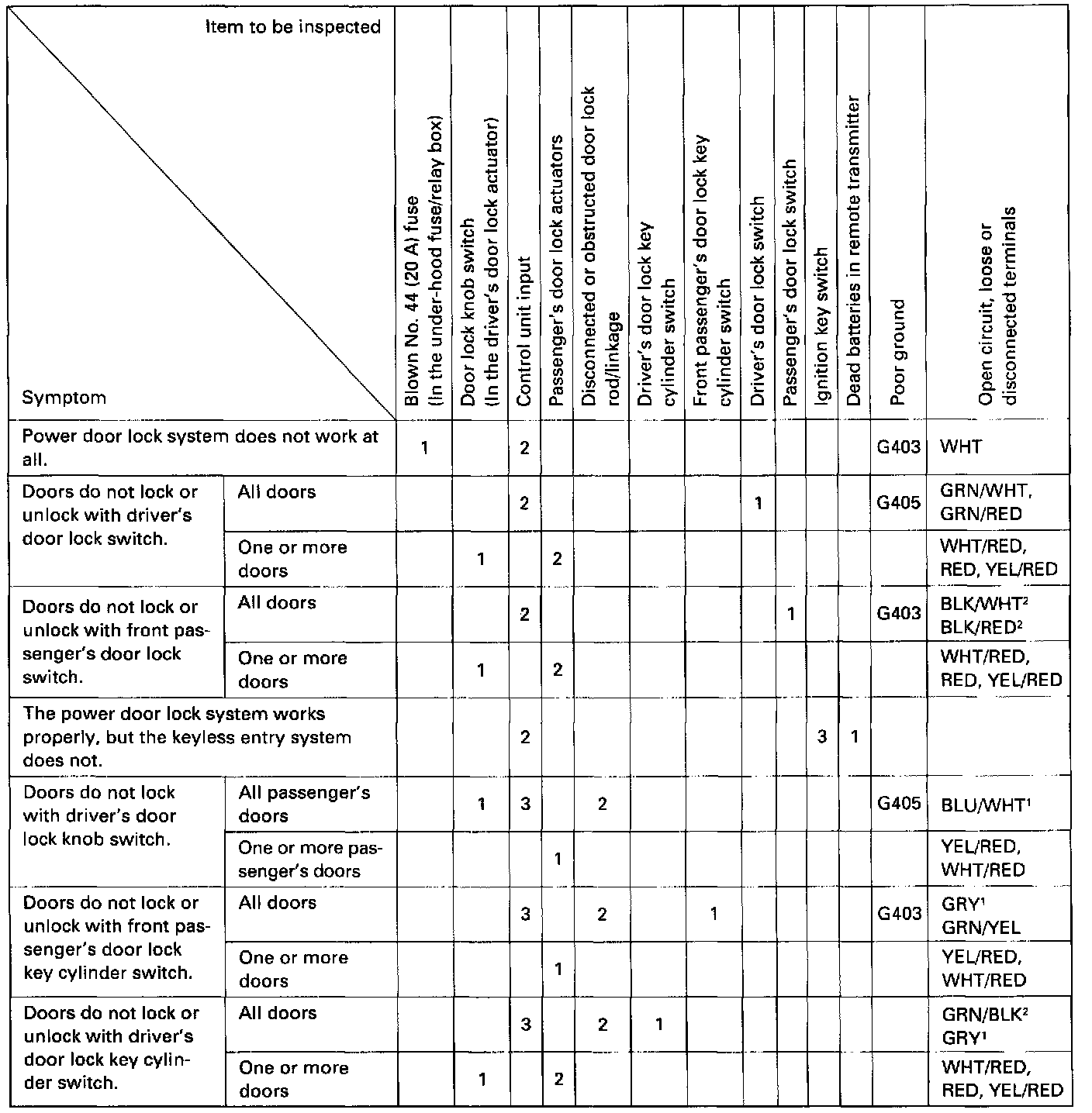 ^ When the remote transmitter button is pressed the first time, only the driver's door will unlock. When the button is pressed the second time, all the doors will unlock.