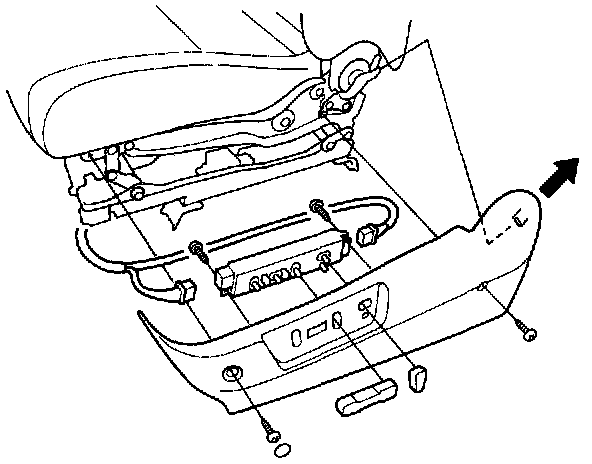 1. Remove the adjustment switch cover from the driver's seat by removing the two screws, and pulling off the adjustment switch knobs.