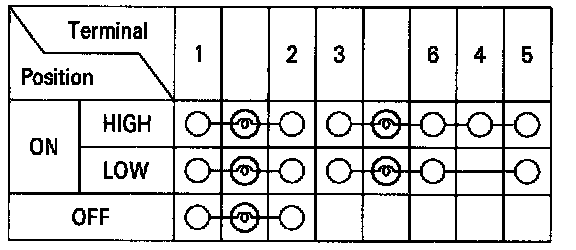 Check for continuity between the terminals in each switch position according to the table.