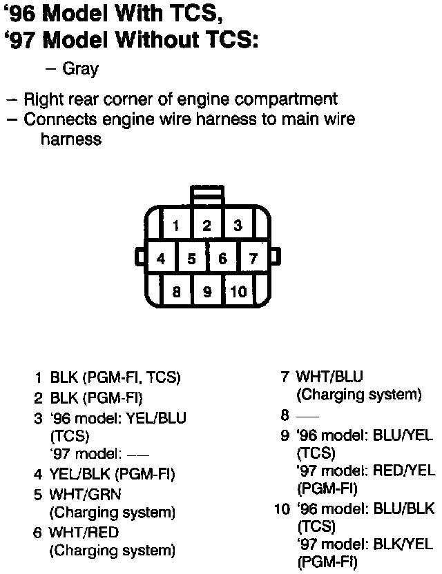 Connector Views - C102 (96 Model With TCS) (97 Model Without TCS):