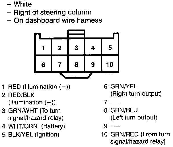 Connector Views - Hazard Warning Switch: