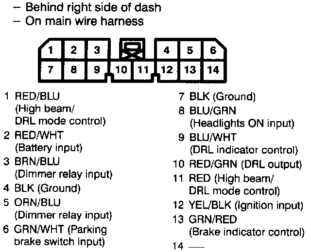 Connector Views -Daytime Running Light Control Unit: