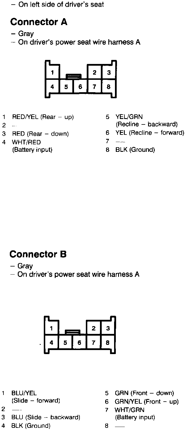 Connector Views - Driver's Power Seat Switch:
