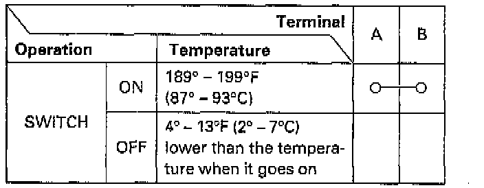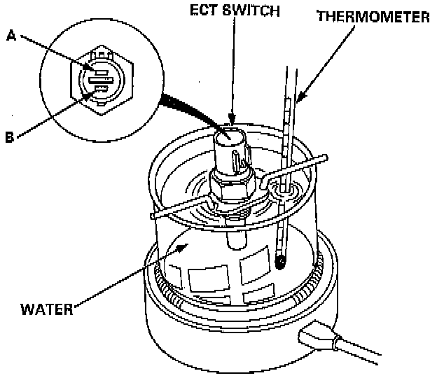 TESTINGWARNING: Removing the ECT switch while the engine is hot can cause the coolant to spray out, seriously scalding you. Always let the engine and radiator cool down before removing the ECT switch.