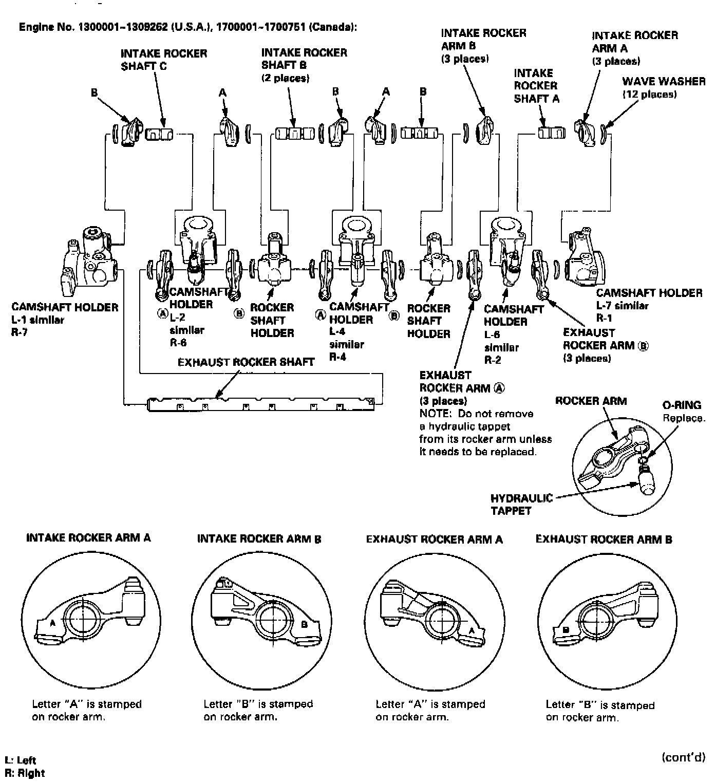 - Rocker arms must be installed in the same position if reused.