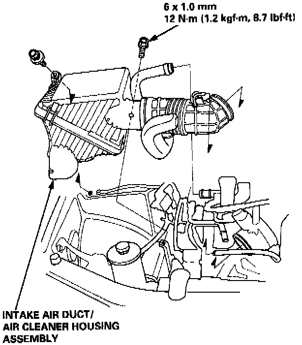 6. Remove the intake air duct and air cleaner housing assembly.