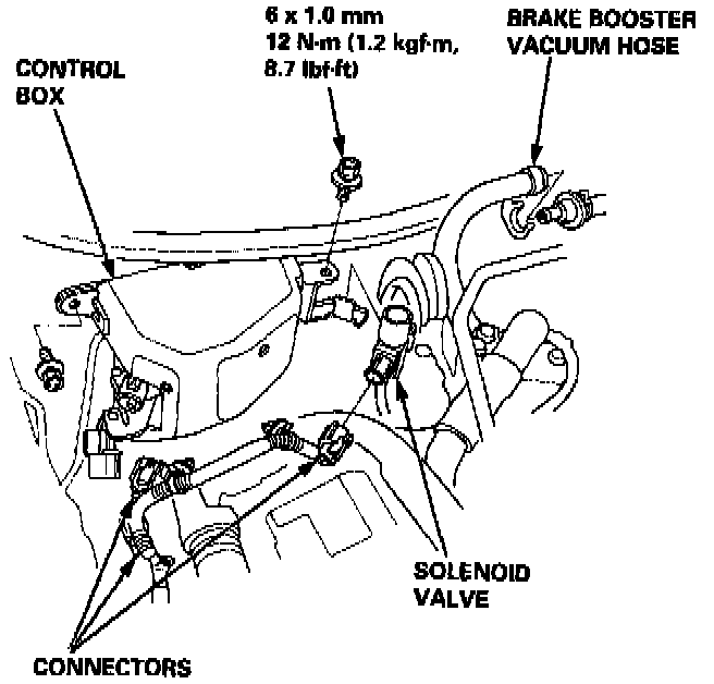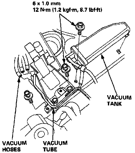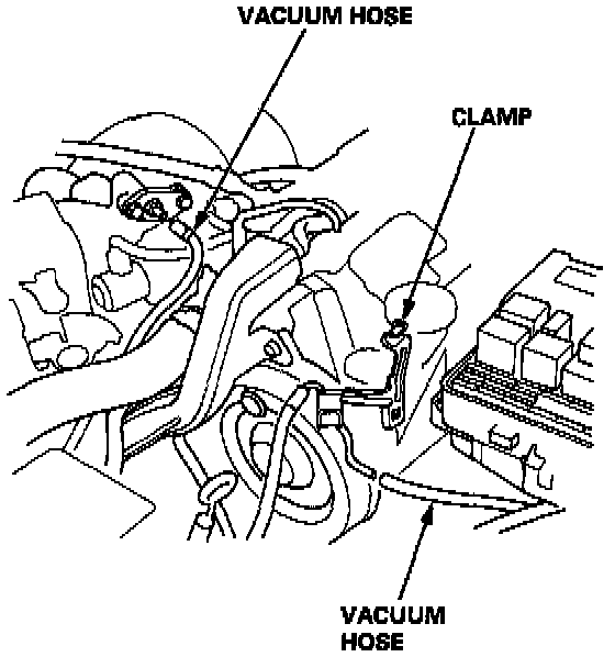 12. Remove the vacuum hoses, then remove the clamp from the under-hood fuse/relay box.