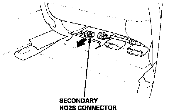 29. Pull the carpet back to expose the Secondary Heated Oxygen Sensor (Secondary H02S) connector, then disconnect the secondary H02S connector.