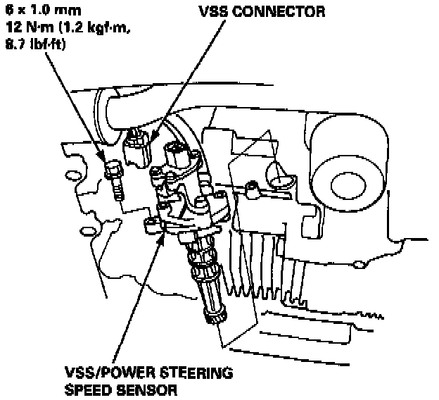 41. Disconnect the Vehicle Speed Sensor (VSS) connector, then remove the VSS/power steering speed sensor.