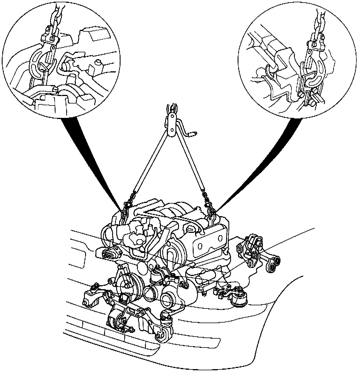 WARNING:- Make sure jacks and safety stands are placed properly and hoist brackets are attached to the correct positions on the engine.