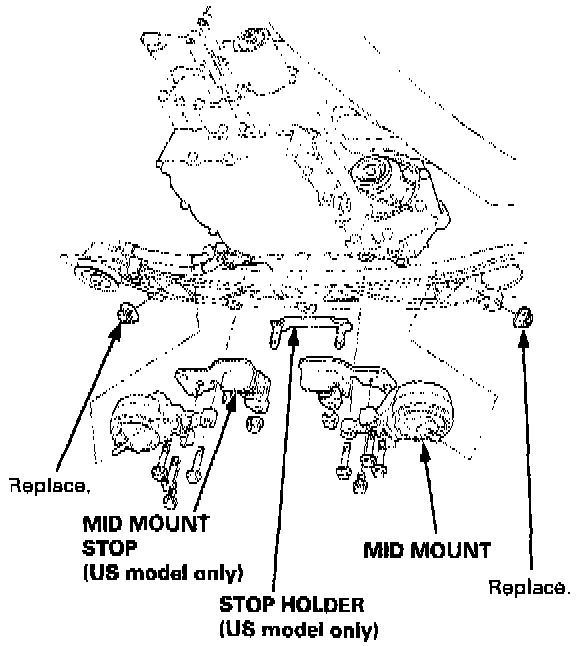 62. Remove the stop holder, mid mount stops and mid mounts.