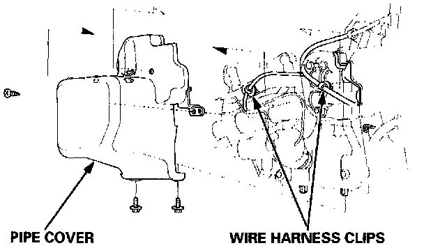6. Remove the wire harness clips, the three self-tap- ping screws and the pipe cover.