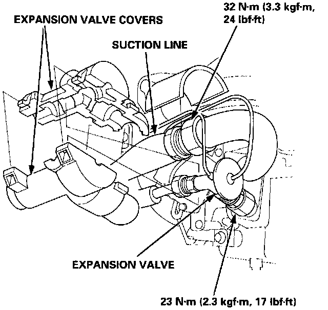 7. Remove the expansion valve covers, then disconnect the suction line and unbolt the expansion valve from the evaporator.
