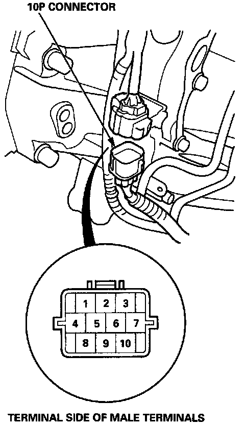 3. Disconnect the 10P connector from the A/T gear position switch.