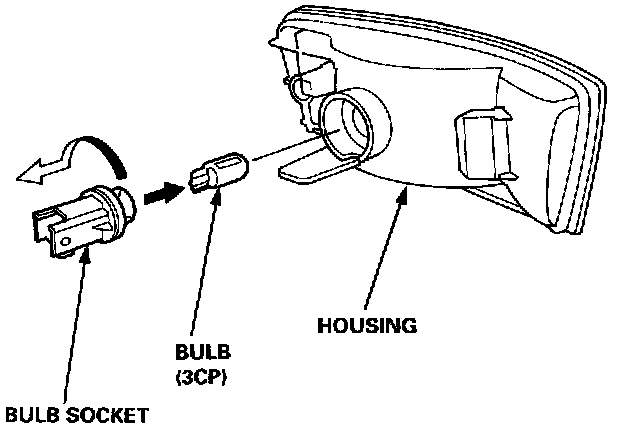 3. Turn the bulb socket 45° counterclockwise, remove it from the light housing, then replace the bulb.