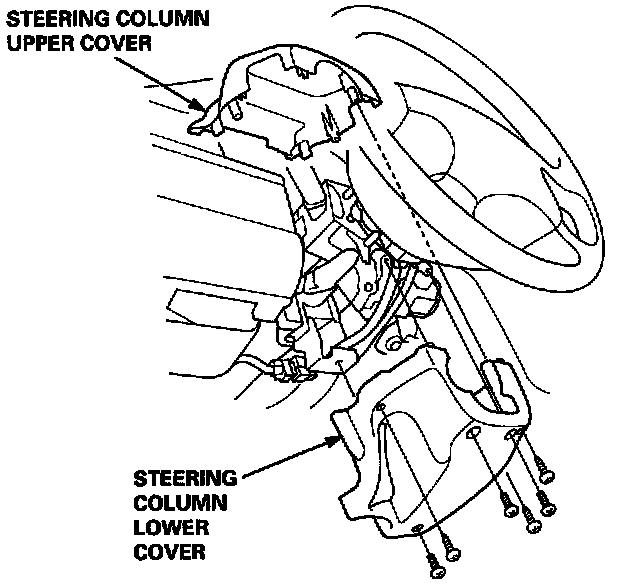 SRS components are located in this area. Review the SRS component locations, precautions, and procedures in the SRS section before performing repairs or service.1. Remove the dashboard lower cover and knee bolster.