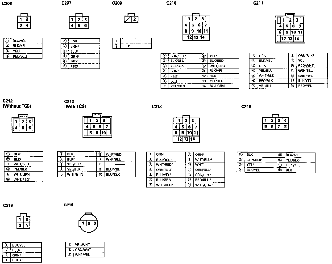 ^ Different wires with the same color have been given a number suffix to distinguish them (for example, YEL/BLK1 and YEL/BLK2 are not the same).