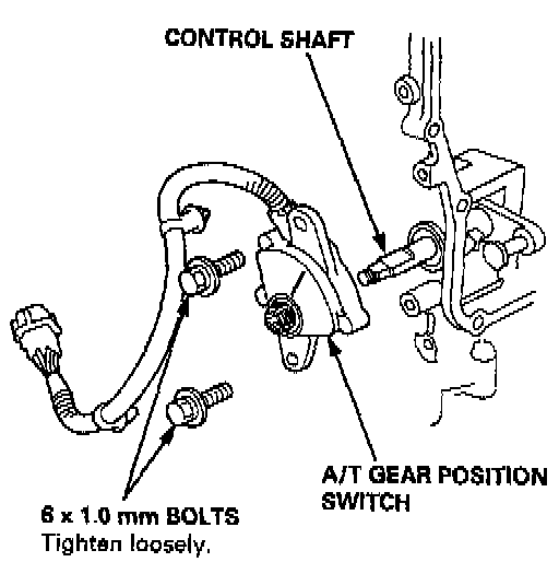 3. Install the A/T gear position switch on the control shaft, then install the bolts loosely.