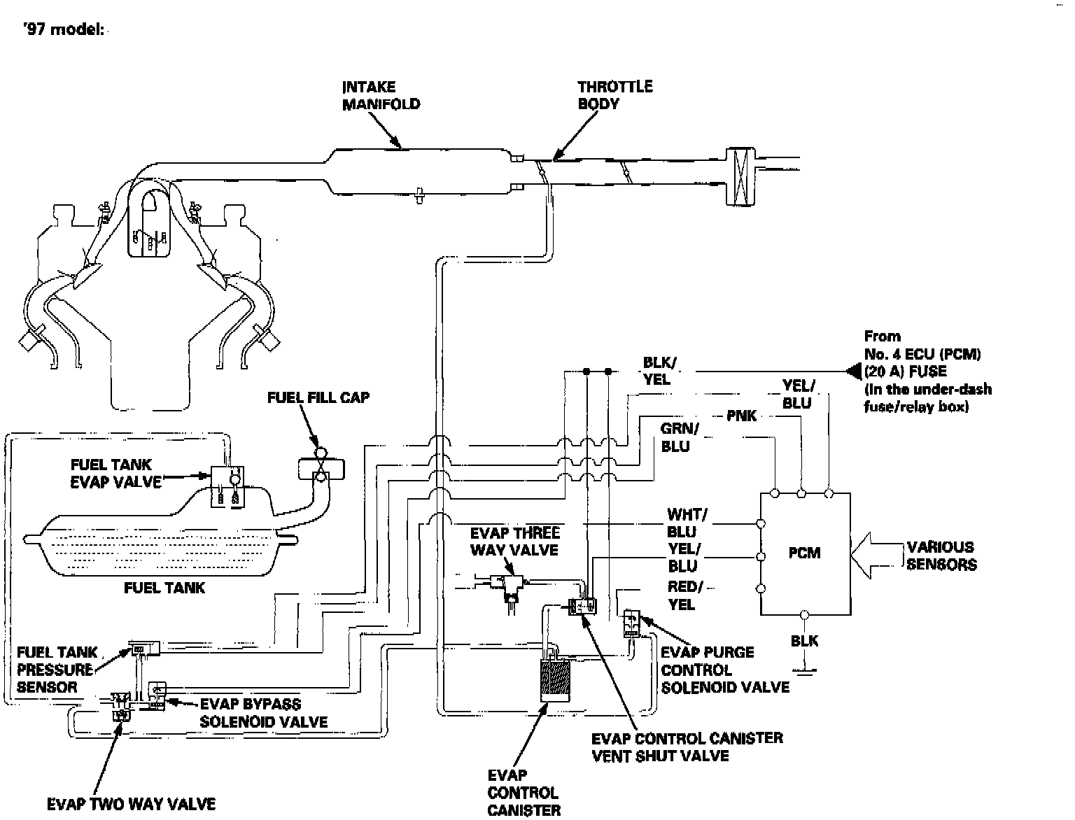 The evaporative emission controls are designed to minimize the amount of fuel vapor escaping to the atmosphere. The system consists of the following components: